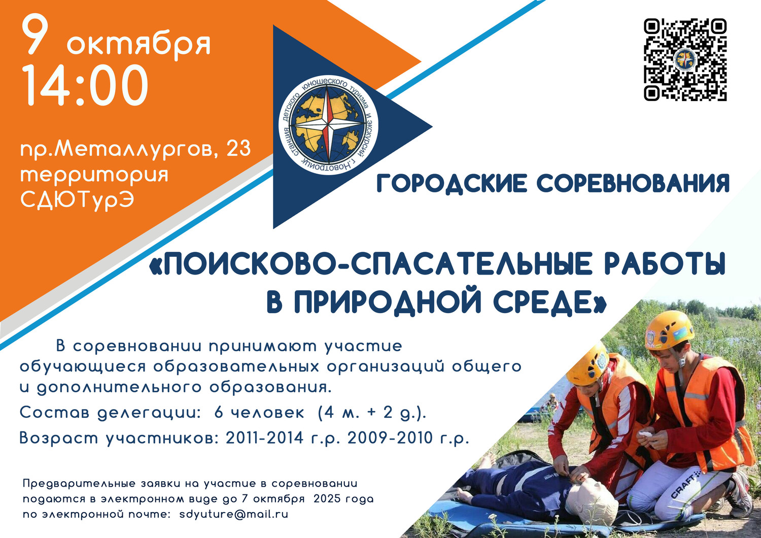 9 октября 2025 года на территории МАУДО «СДЮТурЭ», пр-т Металлургов, д. 23. состоятся Городские соревнования «Поисково-спасательные работы в природной среде» .