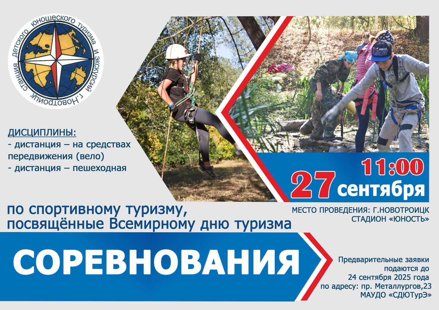 27 сентября на стадионе "Юность" пройдут Соревнования по спортивному туризм, посвящённые Всемироному дню Туризма. К участию в соревнованиях допускаются делегации туристских клубов, учебных заведений, спортивных клубов, члены сборных команд городов и районов, СДЮТур, предприятий и других организаций Оренбургской области. Согласно Правилам – все участники должны быть застрахованы от несчастного случая на дни проведения соревнований (без страховых договоров команда к участию в слете допускаться не будет). Договор должен быть заключен не позднее 26 сентября 2025 года.